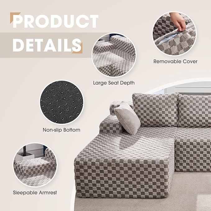 - Comfortable Sectional Couch: The cloud couch is made of breathable fabric and high-resilience memory foam with removable back cushion and neck pillow, providing you with a super comfortable experience. The anti slip design at the bottom ensures the stability of the sofa. The comfy sofa cover is machine washable and can be cleaned when dirty.