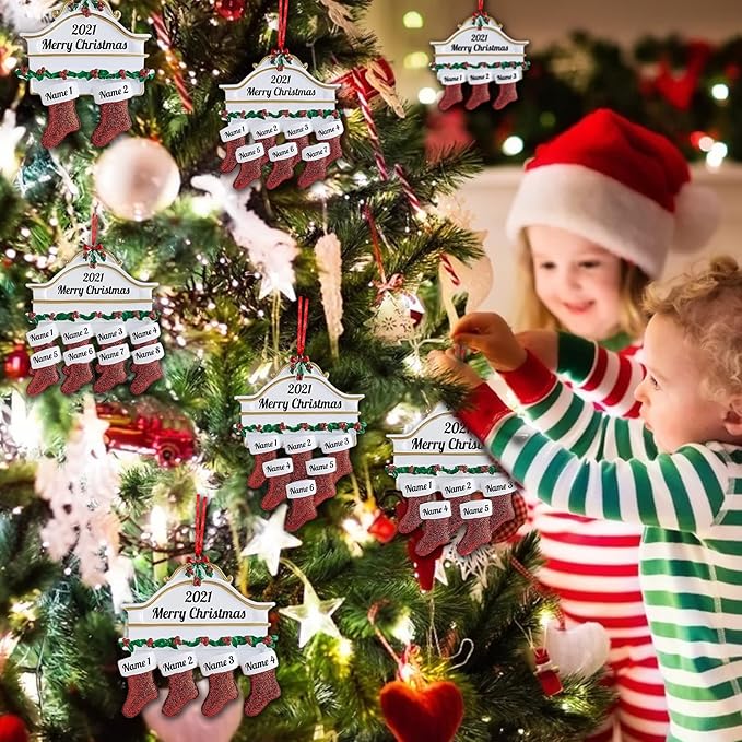 - Durable Ceramic Material: Personalized red stocking family of 2-8 Christmas ornaments.Made of light-textured ceramic material with red glitter, it eye-catching existence