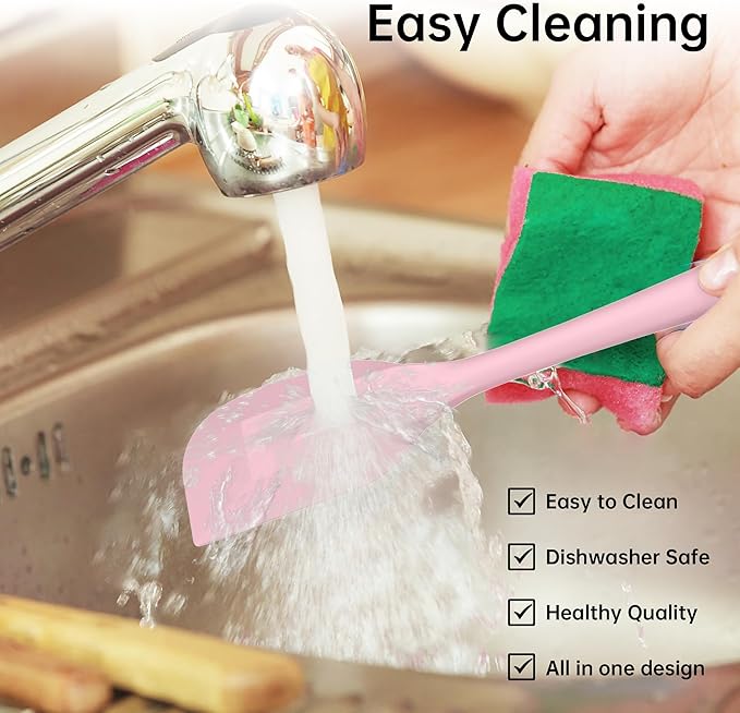 - 【Easy to Clean】: The spatulas for kitchen use in a seamless one-piece shape, comfortable to hold, can be placed in the dishwasher, with a hanging hole design, and can be hung after cleaning.