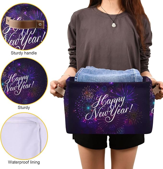 Storage Basket Happy New Year Cube Storage Bins Organizer Bag Collapsible Closet Shelf Baskets with handle for Baby Cloth Pet Toy Book 14.2×10.2×8.3 IN