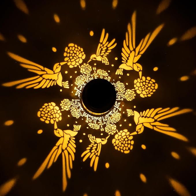 - Exquisite Hummingbird Flower Pattern Design: Crafted with an intricate hollow design featuring beautiful hummingbirds and flowers, this lantern adds an artistic touch to any outdoor space. Emitting a soft, warm white light, the delicate patterns create enchanting shadows when illuminated, making it a stunning decorative piece for gardens, patios, or balconies. Perfect for enhancing outdoor gatherings or peaceful evenings under the stars.