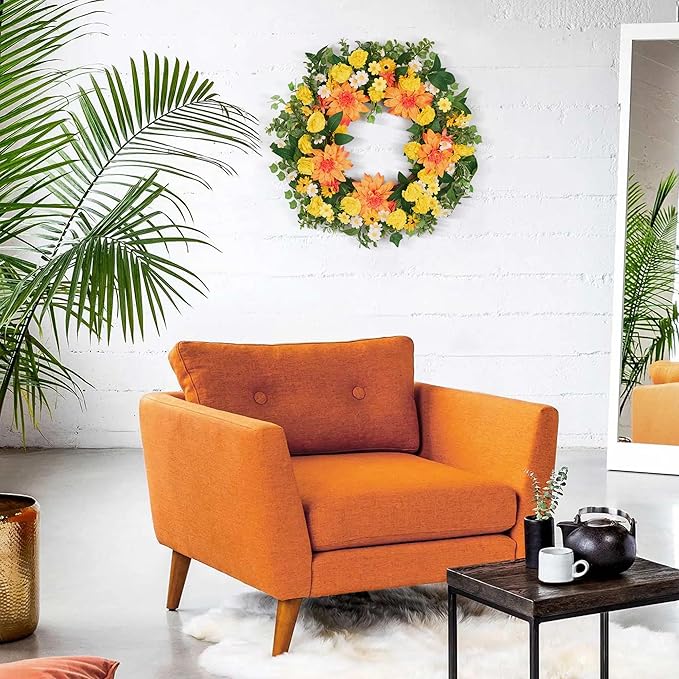 - 【Widely Applicable】: Ideal for decorating front doors, indoor entrances, windows, fireplaces, and farmhouse spaces, this spring summer autumn wreath adds a decorative touch to fall celebrations, weddings, Easter, Thanksgiving, and everyday use, creating a delightful ambiance.