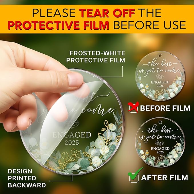 - ACRYLIC MATERIAL: This acrylic ornament has a slightly frosted-white protective film on the front to prevent scratches during shipping. The design is printed on the back side for durability. To fully appreciate the ornament's beauty, please tear off the film to reveal the smooth, glossy finish
