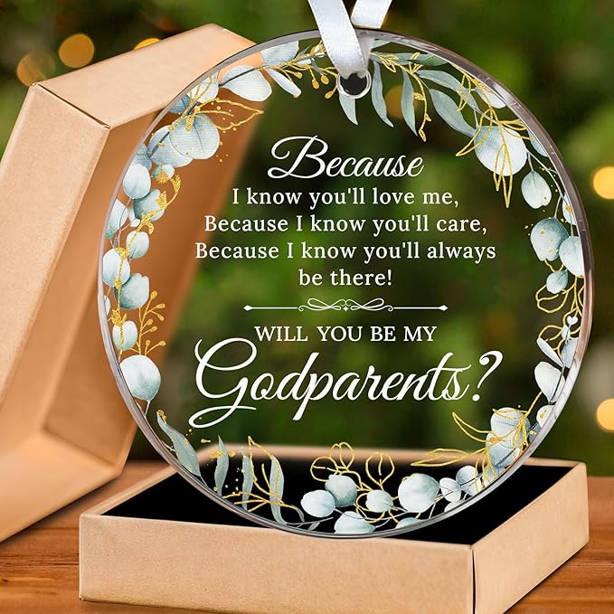 - WILL YOU BE MY GODPARENTS ORNAMENT - Present this exquisite ornament as a formal proposal gift to ask someone to be your child's godparent. Its elegant design symbolizes the important role they will play, making it a meaningful keepsake for this special occasion. Suitable as godparents gift, godparents proposal, will you be my godparents proposal, catholic godparent gift, godparents christmas gift