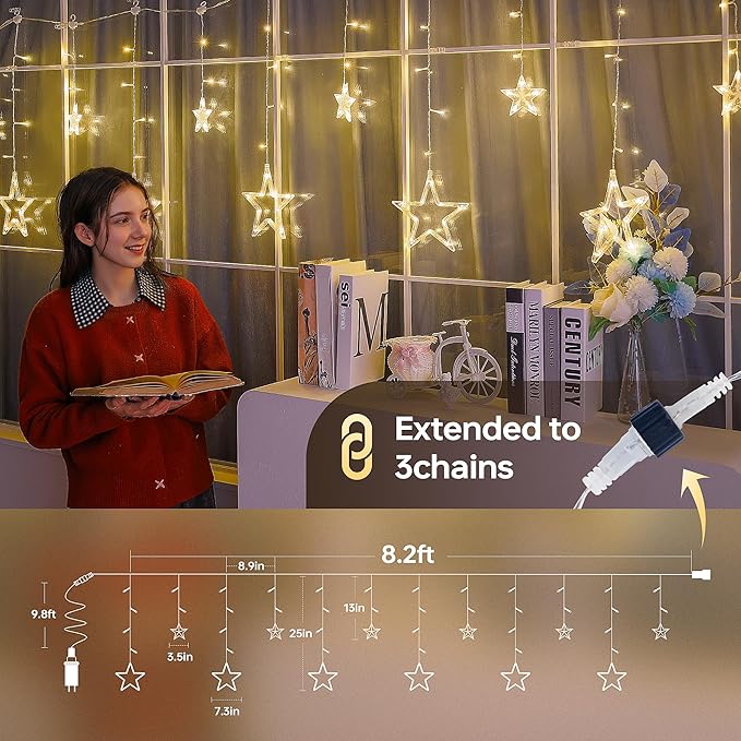 - Widely Used for Indoor Outdoor:The star Icicle Lights is extendable which allows up to 3 sets connected together to illuminate a wider range.It is perfect decor for Halloween,Valentine's Day,Christmas tree, holiday, birthday parties, weddings and many other celebration occasions decorative.