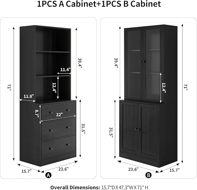 - DIY Your Cabinets: Customize your storage space with 3 drawers, 3 open shelves, 2 hidden shelves, and 3 shelves with glass doors. Perfect for bookcases, kitchen shelves, and display cabinets.