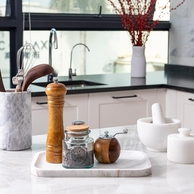 - Widely Applications: The marble bathroom tray is designed in larger sizes and are suitable for holding perfumes, candles, shampoos, jewellery even cutlery. Whether it's a kitchen, bedroom or living room countertop, the stone vanity tray fits in perfectly. Easily fits into a variety of home environments and provides convenient storage.