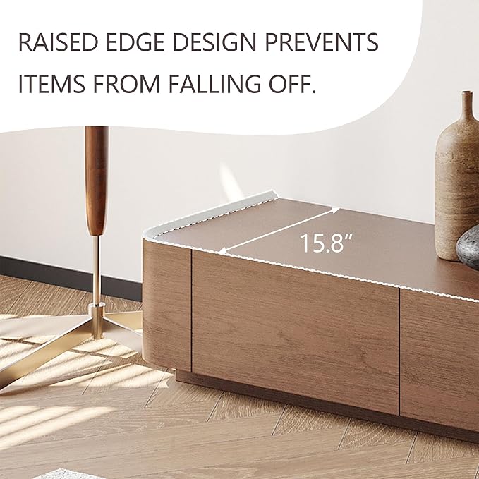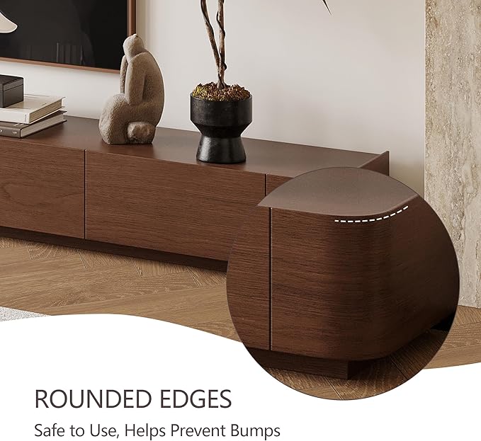 - THOUGHT DESIGN: The wood TV stand features smooth, rounded edges, prioritizing safety by preventing accidental bumps and injuries. You can move around it with ease, free from the worry of sharp corners