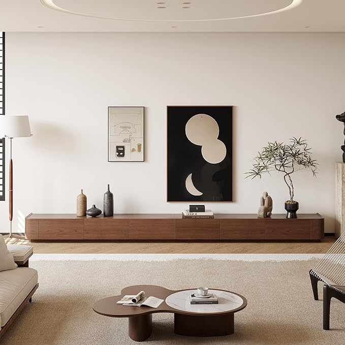 - PREMIUM WOOD: The TV entertainment stand is crafted from premium MDF and veneered with walnut that natural wood texture, creates a warm and natural atmosphere that blends well with various styles
