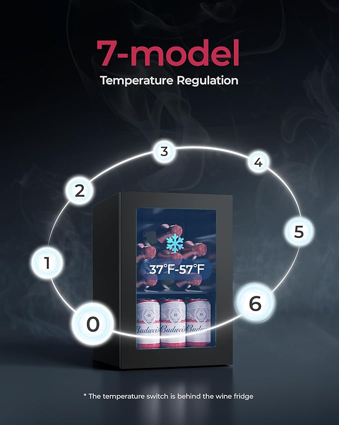 - 【Whisper-Quiet & UV-Resistant】The whisper-quiet operation of mini cooler(under 40dB) ensures peace in any space. UV-resistant glass blocks harmful light, preserving beverage and wine quality in wine cooler. Tight door seals maintain optimal temperature efficiently. Perfect for homes or offices—sustainable and silent.