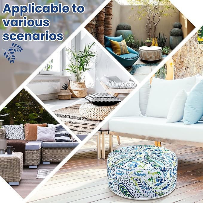 - Safe and Easy to Assemble: carefully designed with your convenience in mind, the round foot stool comes with a convenient inflation solution; Simply ensure the inflation port faces upward and do not fill it too full at once; Inflate partially, fit the inner core into the fabric cover, add more air and ensure to press the air nozzle down to flatten it in the end