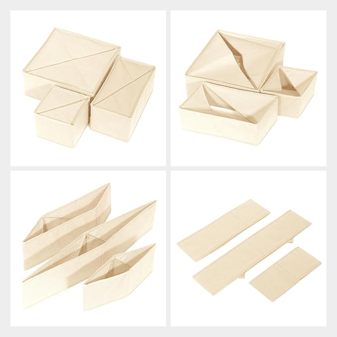 - 【QUALITY MATERIAL】This fabric dresser drawer divider organizer is made with non-woven fabric,which is soft,breathable,easy clean,durable and not easy to bend,deform and tear.These foldable clothes organizer are stackable to take advantage of the space.