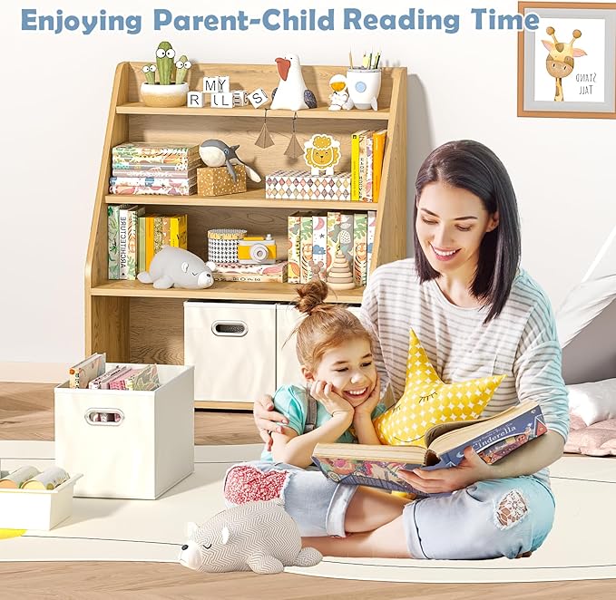 - 【2-IN-1 Kids Bookshelf and Toy Storage】This kids' bookshelf is just like a magical treasure chest. Its 3 tier wooden rack provides a cozy place for books, while the 3 removable fabric drawers serve as secret pockets for toys. It caters to kids, from curious toddlers taking their first steps into the world of play and learning, to older children with a growing collection of hobbies. They can neatly store their books, toys, pens, and other cherished items. Each time your child opens it, they are greeted by the magic of stories and playthings, unlocking the door to boundless imagination.