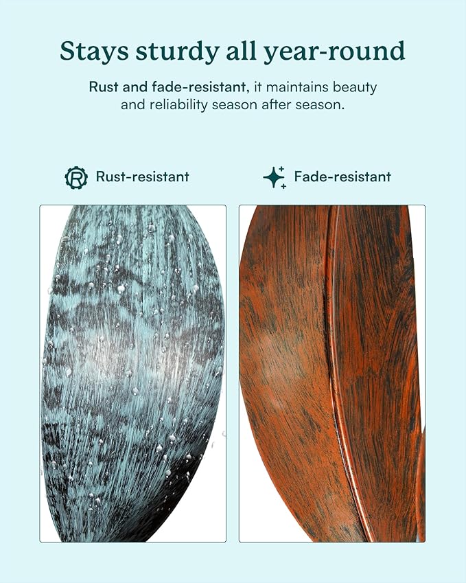 - Stays sturdy all year-round: Built with all-metal construction and weather-resistant paint, this wind spinner is waterproof, fade-proof, and designed to withstand harsh conditions. Its thicker, heavier blades resist strong winds without bending or deforming.