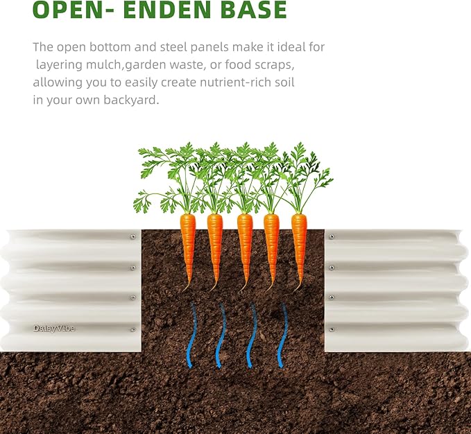 - Sturdy and Durable Materials: Made from high-quality zinc-magnesium aluminum alloy steel, this raised flower bed is built to withstand the elements while providing a secure environment for your plants to thrive. With a remarkable lifespan of over 30 years, this garden bed is built to withstand the test of time.