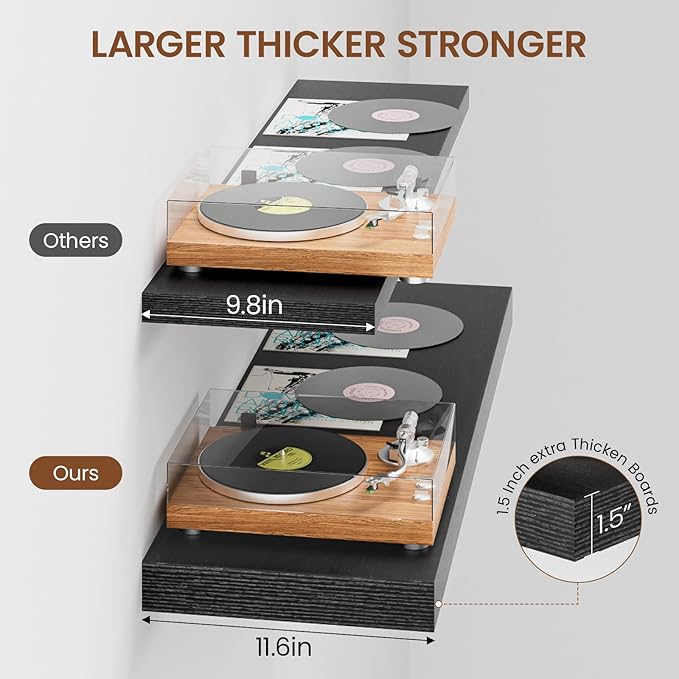 - Easy Installation: Comes with all the mounting hardware and detailed instructions, easy to install within 10 minutes. Thicken & strong metal brackets provide excellent support, keeping the floating shelves sturdy against the wall without sagging. The pre-drilled holes allow for secure attachment of boards to brackets, ensuring a reliable display.