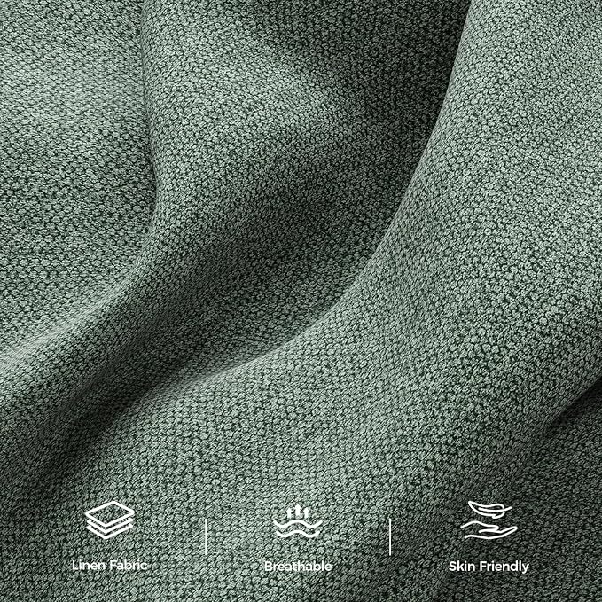 89” Futon Sofa Bed, Linen Comfy Futon Couch Bed with 2 Square Pillows, Convertible Sleeper Sofa with Adjustable Backrest& Armrests, Modern Loveseat Sleeper for Living Room, Bedroom, Green