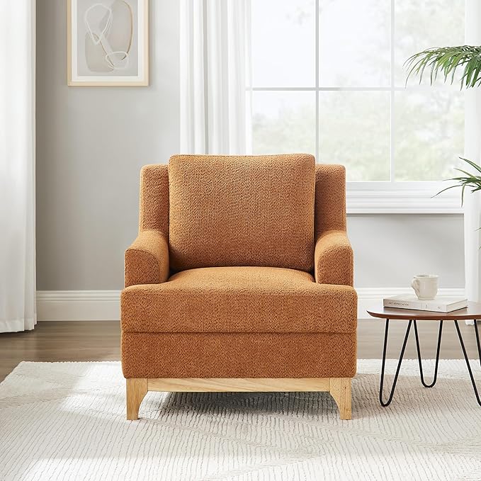 Oversized Accent Chair, Modern Boucle Armchair with Wood Legs, Modern Reading Chair with Thick Cushion, Comfy Chairs for Living Rooms, Bedrooms, Reading nooks and Apartments