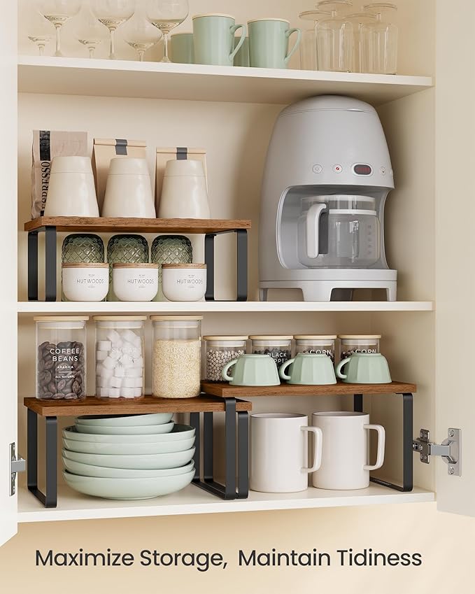 - 【MULTIPURPOSE USE】Not just for the kitchen! Use these kitchen counter shelves to elevate your dining table centerpiece in the restaurant, organize makeup on your bedroom desk, or store toiletries in the bathroom