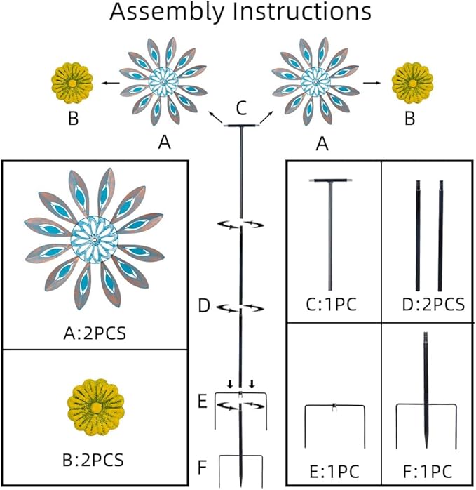 - Friendly Installation:This outdoor wind spinners is very friendly for first time users, no extra tools are needed, just follow the instructions and install it so you can enjoy your happy yard life faster