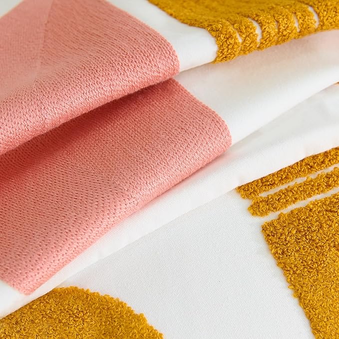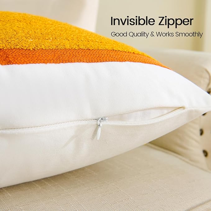 - ⭐【FABRIC AND SIZE】The front of this boho couch pillow cover is made of 100% polyester + 10% viscose,the backside is made of 100% cotton.Measures 18x18 inches.Exquisite workmanship enables tufting part dense soft and aesthetic.The 3D effect with the tufting technic makes these abstract pillow covers so distinctive