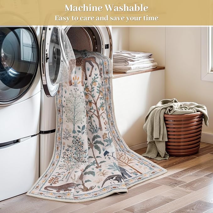 - Soft Printed Jungle Rug: Our 9x12 area rug is made from faux wool fibers, which are super soft and comfortable to step on. This living room rug has vibrant jungle animal motifs against a neutral backdrop, making your space stand out effortlessly
