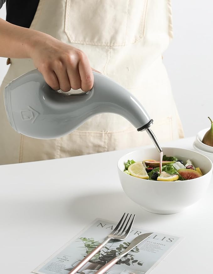 Sweejar Ceramic Olive Oil Dispenser Bottle,24 Oz Opaque Cruet Protects EVOO Oil to Reduce Oxidation, Suitable for Storage Vinegar, Coffee Syrups, Liquids (Gray)