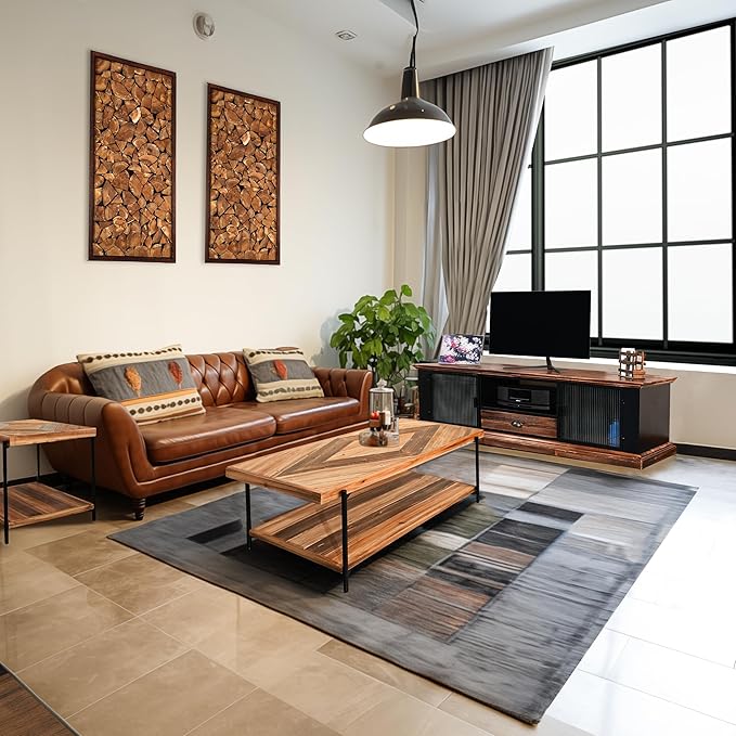 CONSDAN StoneCreek 4 Pieces Fir Living Room Table Set, Solid Fir Wood, Includes 65 inch TV Stand, Coffee Table& Two End Tables