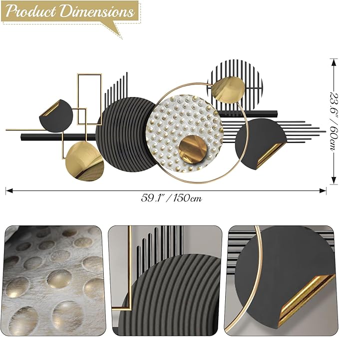 - Metal Wall Art: Made of high quality metal, with fine workmanship, wear resistant and not easy to rust, can serve your home for many years. This wall decor artwork size is 59.1"x22.8".