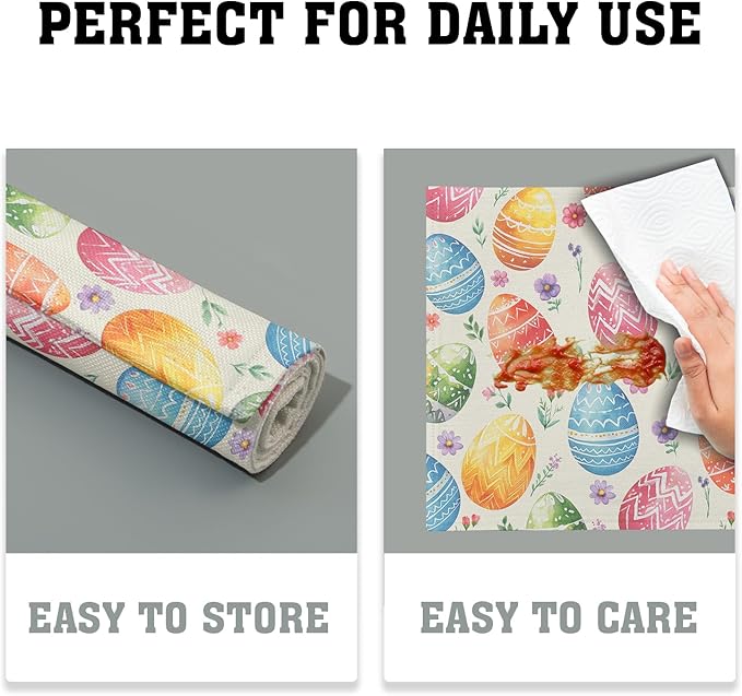 - Widely Used: Our colorful easter place mats are suitable for all seasons, all kinds of occasions, kitchen, restaurant, hotel, outdoor parties, etc. It's also a holiday or season ornament and a perfect gift for friends and relatives