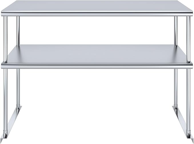 - 18 in. x 48 in. x 32 in. double-tier overshelf. Each tier holds up to 295 Lbs, providing robust support for heavy kitchen essentials.