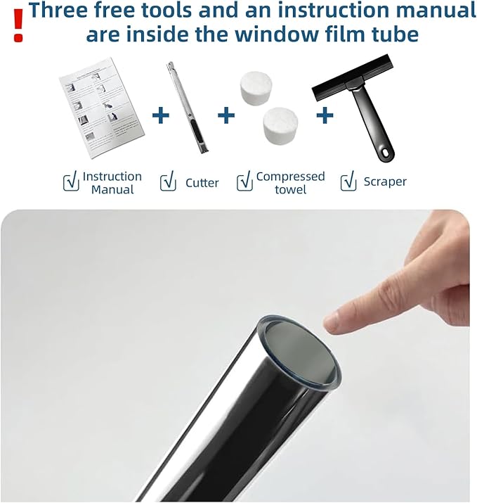 - TIPS: 1. Please note that the heat control window film may appear temporarily blurry after installation. After some time, the sun blocking window film will gradually regain clarity. 2.After installing the window heat blocking film, if you notice small bubbles/water stains that are difficult to remove, please be patient. These bubbles/water stains will naturally evaporate over time.