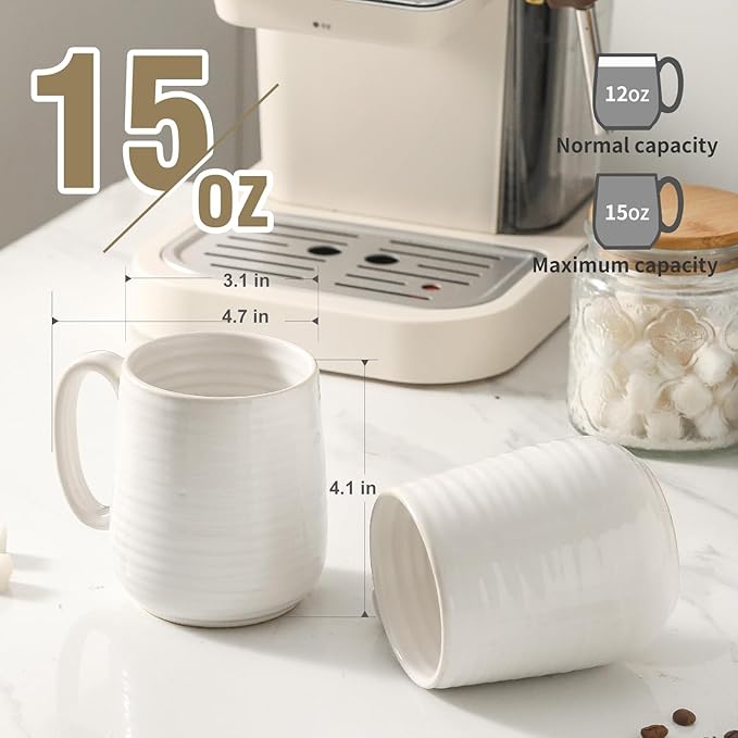 Hasense Coffee Mugs Set of 4, 15 Ounce Porcelain Latte Mug Set with Handle for Morning Coffee Tea and Cocoa, Ceramic Coffee Cups with Unqiue Glaze for Men, Women, Plain