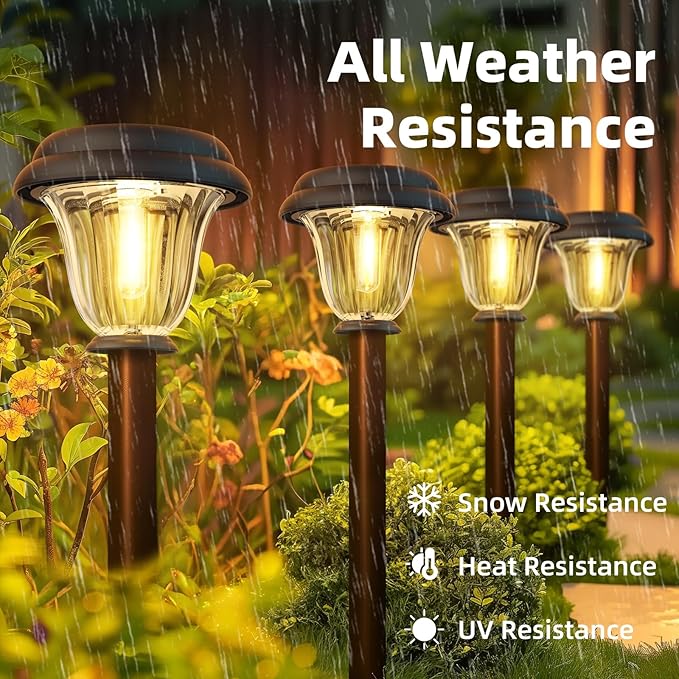 - Easy Installation - No wiring or electricity is required, making installation a breeze. Simply stake the pathway lights into the ground in a sunny spot, without the hassle of traditional outdoor lighting systems, provide illumination for your garden or yard .