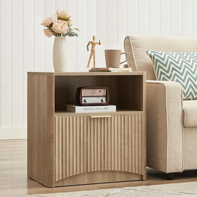 - 【Versatile Nightstand】This fluted nightstand with drawers combines an open upper shelf for easy access to essentials like books, with a lower drawer for concealed storage of personal items, offering a convenient solution for bedside organization