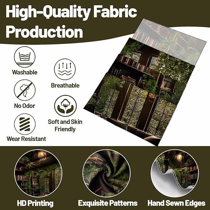 - SIZE AND HANGING: This bookshelf tapestry comes in many sizes,suitable for various walls and spaces. Contains 3 metal-free pushpins and 3 metal clips to help you easily install or remove.