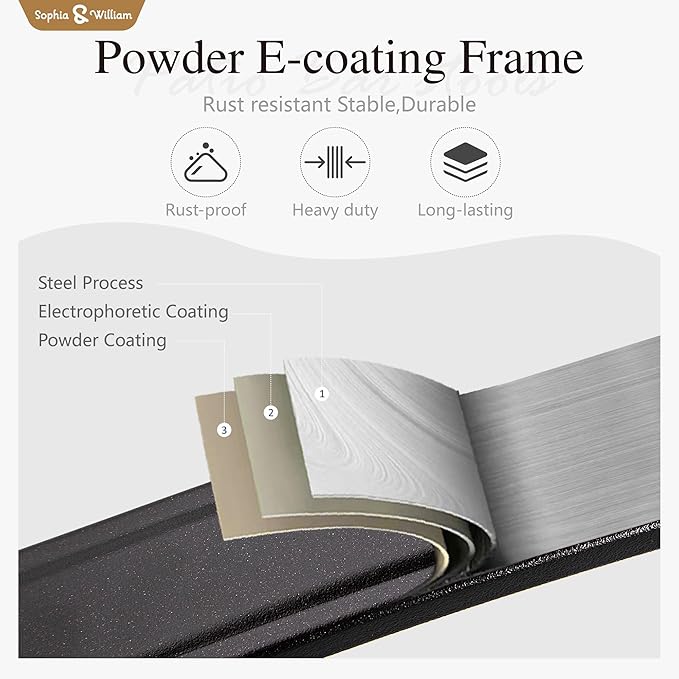 - 【Built to Last】Crafted for lasting enjoyment, this patio set boasts a sturdy construction and weatherresistant ecoating technology that stand up to the elements. Easy to clean and maintain