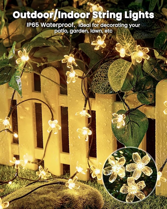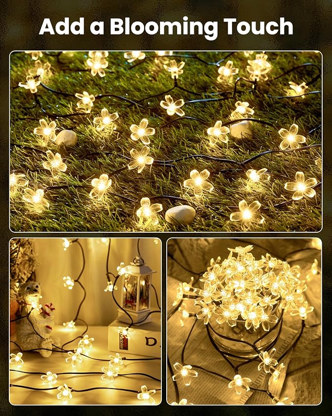 - 【Cherry Blossom Design】Bring the beauty of spring to your garden year-round with these solar Christmas lights, featuring cherry blossom-inspired design. With 120 LED bulbs and 52ft total in 2-pack, create a charming atmosphere easily;