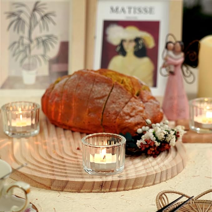 - Elegant Transparent Design: Each tea light holder measures approximately 2 inches wide by 1.3 inches high, making them perfect for tea light candles, wish candles, and flameless candles. The transparent cup softens the glow of the flame, adding a warm ambiance to your daily decor