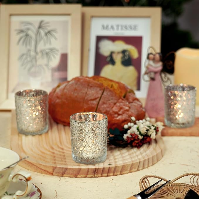 - Enchanting Votive Candle Holders: Light up your space with our stunning 24-piece silver glass candle holder set! Featuring a unique polishing technique, these vintage votive candle holders reflect shimmering light when lit, creating a cozy and elegant atmosphere for any occasion