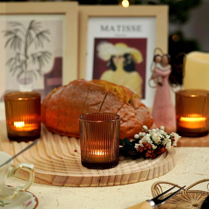 Homemory 12 Pcs Glass Votive Candle Holders, Amber Tealight Candle Holder, Vintage Candle Holders Bulk for Table Centerpieces, Christmas, Baby Shower, Birthday, Wedding, Party