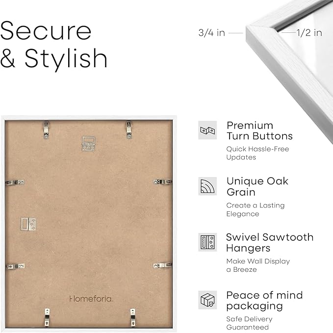 Homeforia 16x20 Diploma White Frame, High End Oak 16 x 20 Certificate Wood Frames with Mat 14 by 17 inch, 20x16 Document Frame Matted to 14x17, Wooden Degree Frames, Tempered Glass, Wall Kit, Set of 1