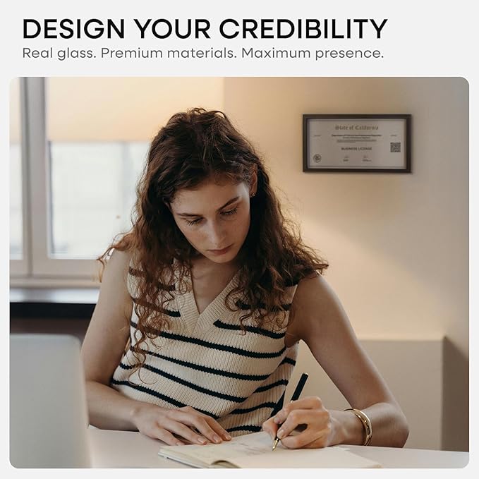 Homeforia 4x9 Business License Frame Black, High End Metal 4 x 9 Certificate Frames with Real Glass, 9x4 Document Frames for Wall or Tabletop, 4 by 9 Picture Frames, Tempered Glass, Wall Kit, Set of 1