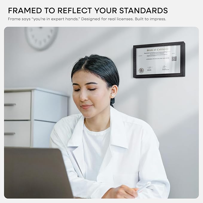 Homeforia 5.5x8.5 Business License Frame Black, High End Oak 5.5 by 8.5 Wood Certificate Frame, 8.5 x 5.5 Document Frame for Wall or Tabletop, Wooden Picture Frames, Tempered Glass, Wall Kit, Set of 1