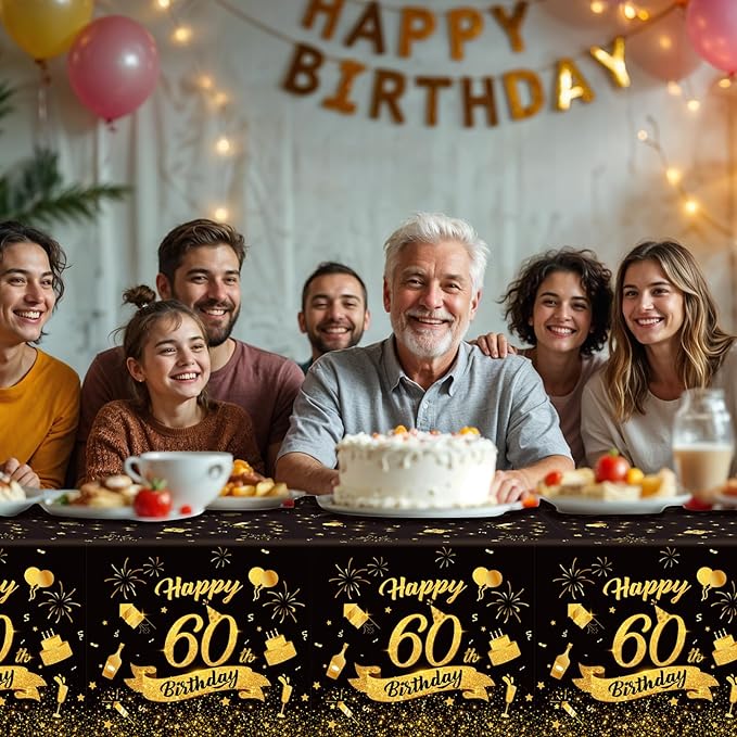 - 60th Birthday Tablecloth Material:60th birthday plastic table cloths are made of PE material, with smooth surface, which can not only protect your dining table from scratches and stains but is also easy to clean and maintain