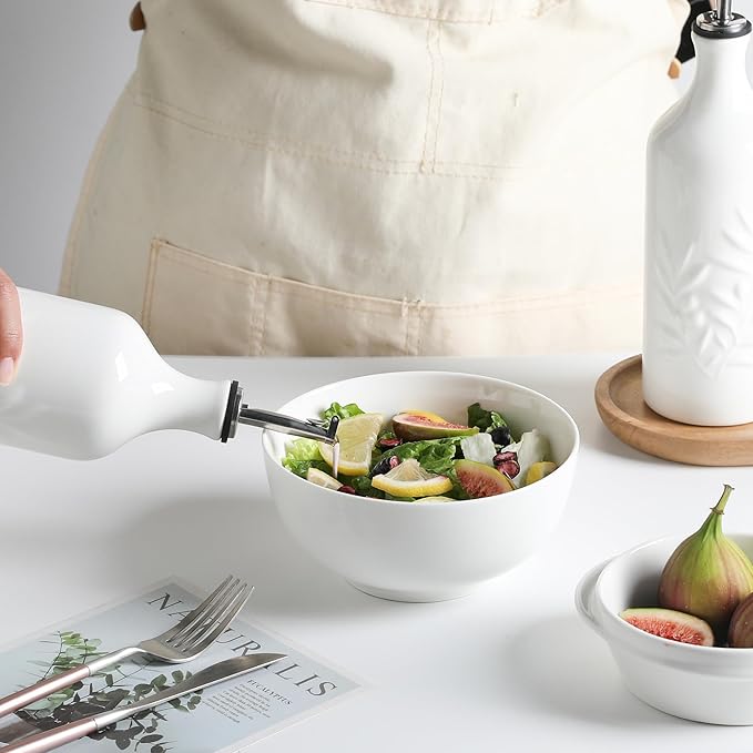 Sweejar Ceramic Olive Oil Dispenser Bottle, 20 Oz Relief Opaque Oil Cruet Protects To Reduce Oxidation, Suitable for Storage,Vinegar, Soy Sauce,Liquids,Set of 2 (White White)
