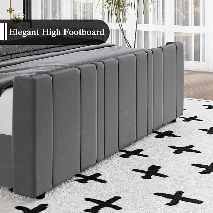 HOMBCK Queen Bed Frame Upholstered Bed with Velvet Headboard & Footboard, Vertical Channel Tufted Design/Wooden Slats/Noise Free/No Box Spring Needed/Easy Assembly, Grey