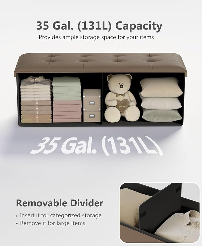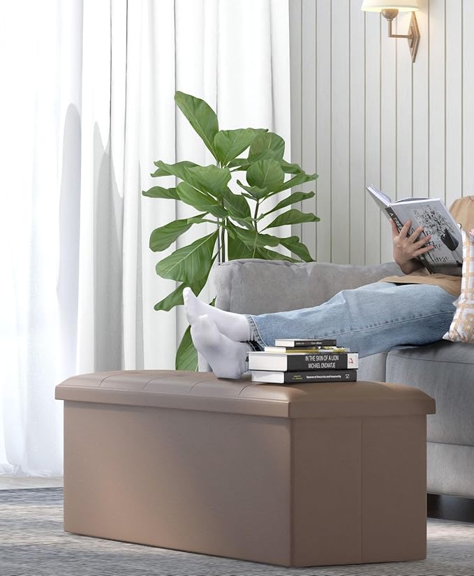 Storage Ottoman Bench, Folding Ottoman Foot Rest, End of Bed Bench,Storage Chest, for Living Room, Bedroom, Hallway, Entryway, Holds up to 700 lb (BROWN1, 43")