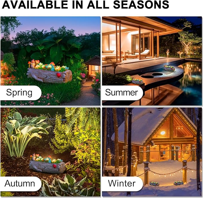 - [Creative Garden Decor] Elevate your garden with our stump succulent statues solar light! In the quiet of the night, these solar-powered succulent lights, once turned on, seem to come to life as if by magic. These charming Hedgehog, Ladybug, Mushroom not only light up your outdoor space but also add a touch of whimsy. Brighten your nights with eco-friendly magic!