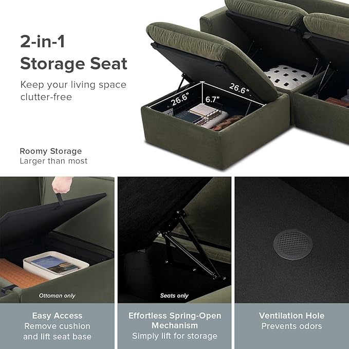 - Ample Hidden Storage for a Tidy Home: Keep your living room clutter-free with generous built-in storage beneath the seats. It’s perfect for stashing blankets, pillows, or other everyday items, ensuring everything you need is always within reach—while staying out of sight